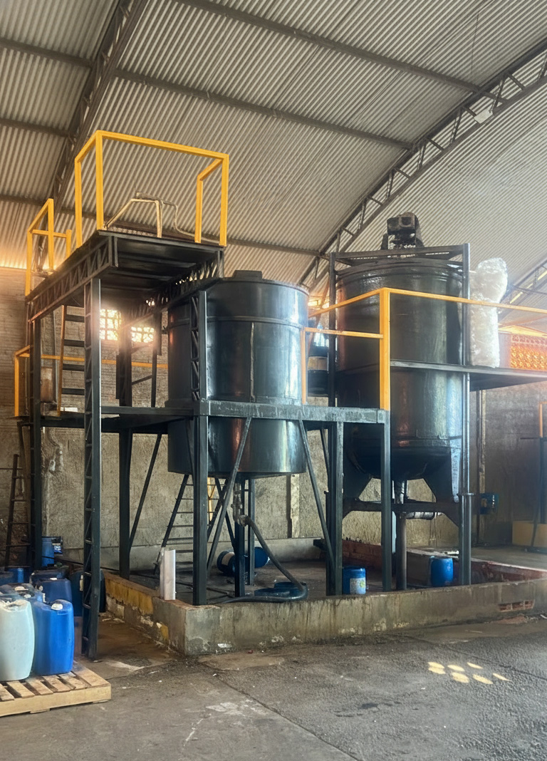 Nossa estrutura é preparada para produzir, armazenar e distribuir produtos químicos com controle rigoroso em todas as etapas, garantindo padronização, eficiência e confiabilidade.